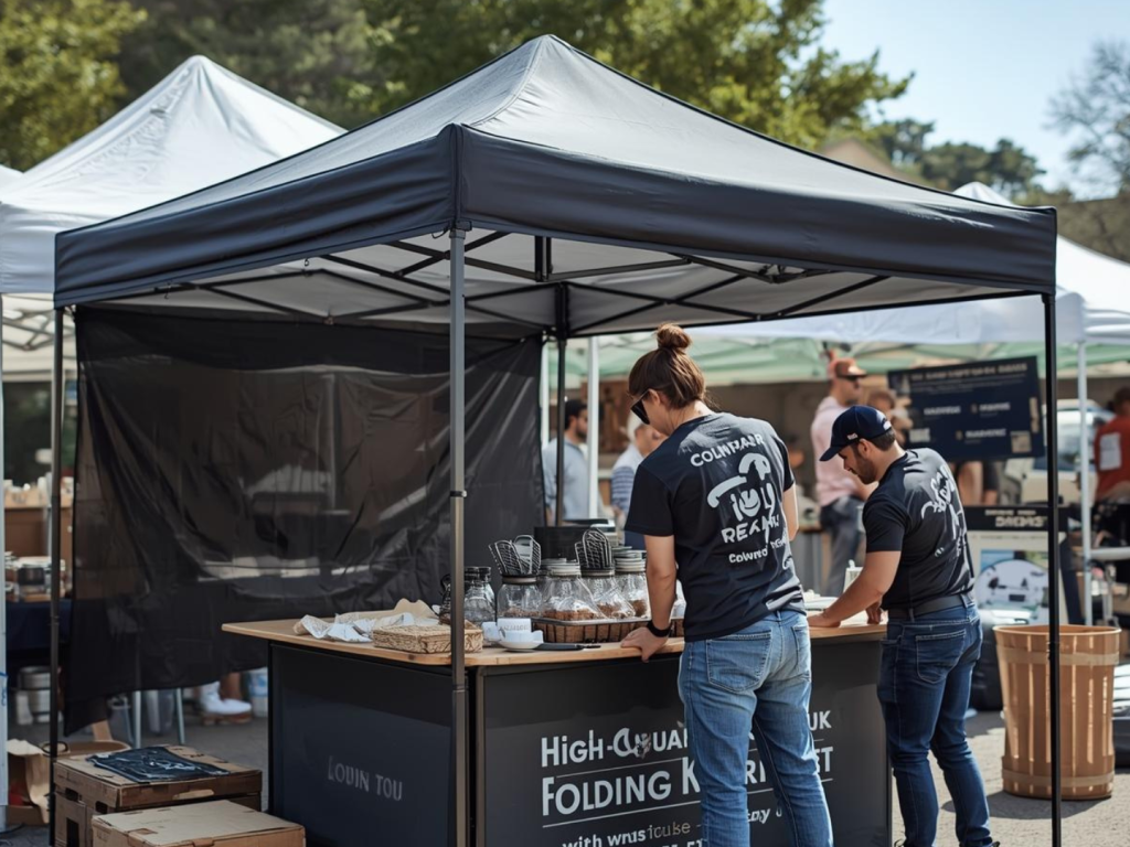 Kioskos plegables que se montan y desmontan en cuestión de minutos, sin herramientas. Perfectos para ferias, activaciones y ventas itinerantes.